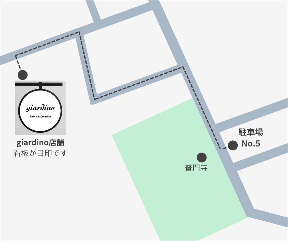 普門寺前の駐車場(5番)もご利用いただけますので、お車でお越しの際は、ご予約時にお知らせください。